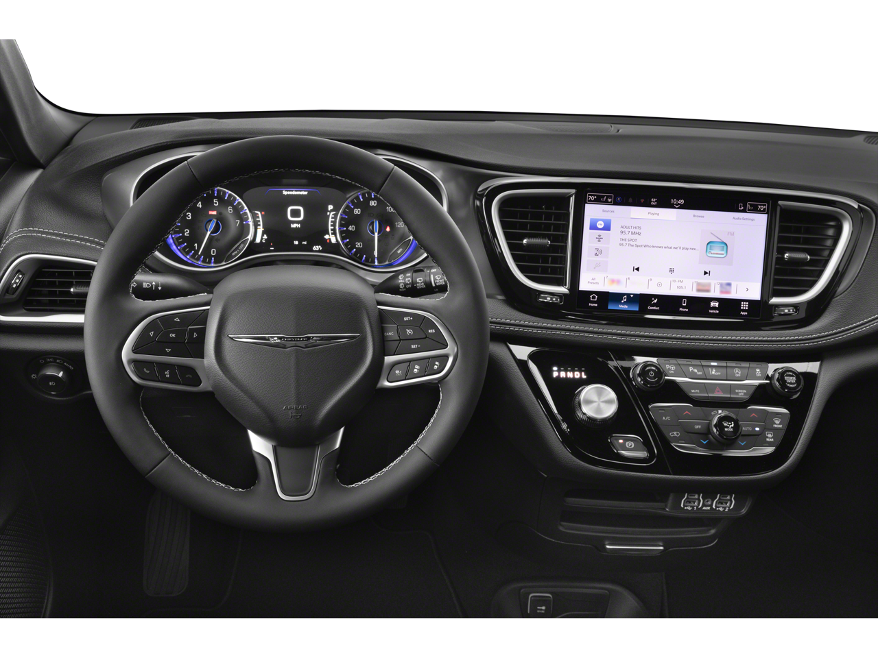 Pacifica Select is nicely equipped with Quick Order Package 27L, 10.1 Touchscreen Display, 18 x 7.5 Painted Aluminum Wheels, 3.73 Axle Ratio, 3rd row seats: split-bench, 4-Wheel Disc Brakes, 4G LTE Wi-Fi Hot Spot, 6 Speakers, ABS brakes, Air Conditioning, Alloy wheels, AM/FM radio: SiriusXM, Apple CarPlay, Apple CarPlay/Android Auto, Auto-dimming Rear-View mirror, Automatic temperature control, AWD Suspension, Black Seats, Brake assist, Bumpers: body-color, Caprice Leatherette Bucket Seats, Compass, Connectivity - US/Canada, Delay-off headlights, Disassociated Touchscreen Display, Driver door bin, Driver vanity mirror, Drivers Seat Mounted Armrest, Dual front impact airbags, Dual front side impact airbags, Electronic Stability Control, Emergency communication system: Chrysler Connect, For Details, Visit DriveUconnect.com, Four wheel independent suspension, Front anti-roll bar, Front Bucket Seats, Front dual zone A/C, Front fog lights, Front reading lights, Fully automatic headlights, Garage door transmitter, Google Android Auto, GPS Antenna Input, Heated door mirrors, Heated front seats, Heated steering wheel, Illuminated entry, Integrated Active Noise Cancellation, Integrated Center Stack Radio, Knee airbag, Low tire pressure warning, Memory seat, Occupant sensing airbag, Outside temperature display, Overhead airbag, Overhead console, Panic alarm, ParkView Rear Back-Up Camera, Passenger door bin, Passenger seat mounted armrest, Passenger vanity mirror, Power door mirrors, Power driver seat, Power Liftgate, Power steering, Power windows, Radio data system, Radio: Uconnect 5 with 10.1 Display, Rain sensing wipers, Rear air conditioning, Rear reading lights, Rear window defroster, Rear window wiper, Reclining 3rd row seat, Remote keyless entry, Security system, Speed control, Split folding rear seat, Spoiler, Steering wheel mounted audio controls, Tachometer, Telescoping steering wheel, Tilt steering wheel, Traction control, Trip computer, Turn signal indicator mirrors, USB Host Flip, Variably intermittent wipers, and VoltmeteR. Price includes: $3500 - 2026 National Retail Bonus Cash . Exp. 04/30/2026
