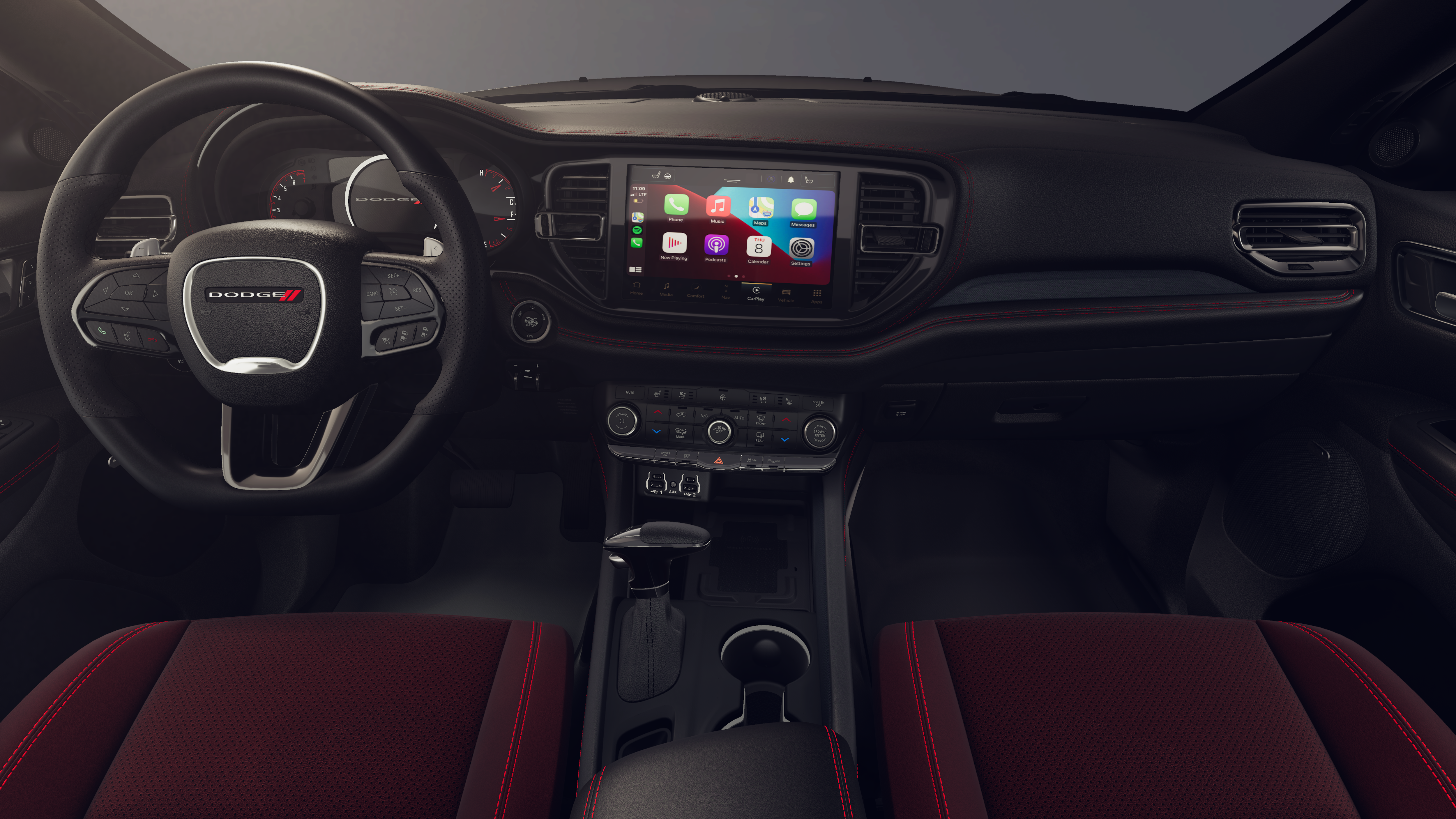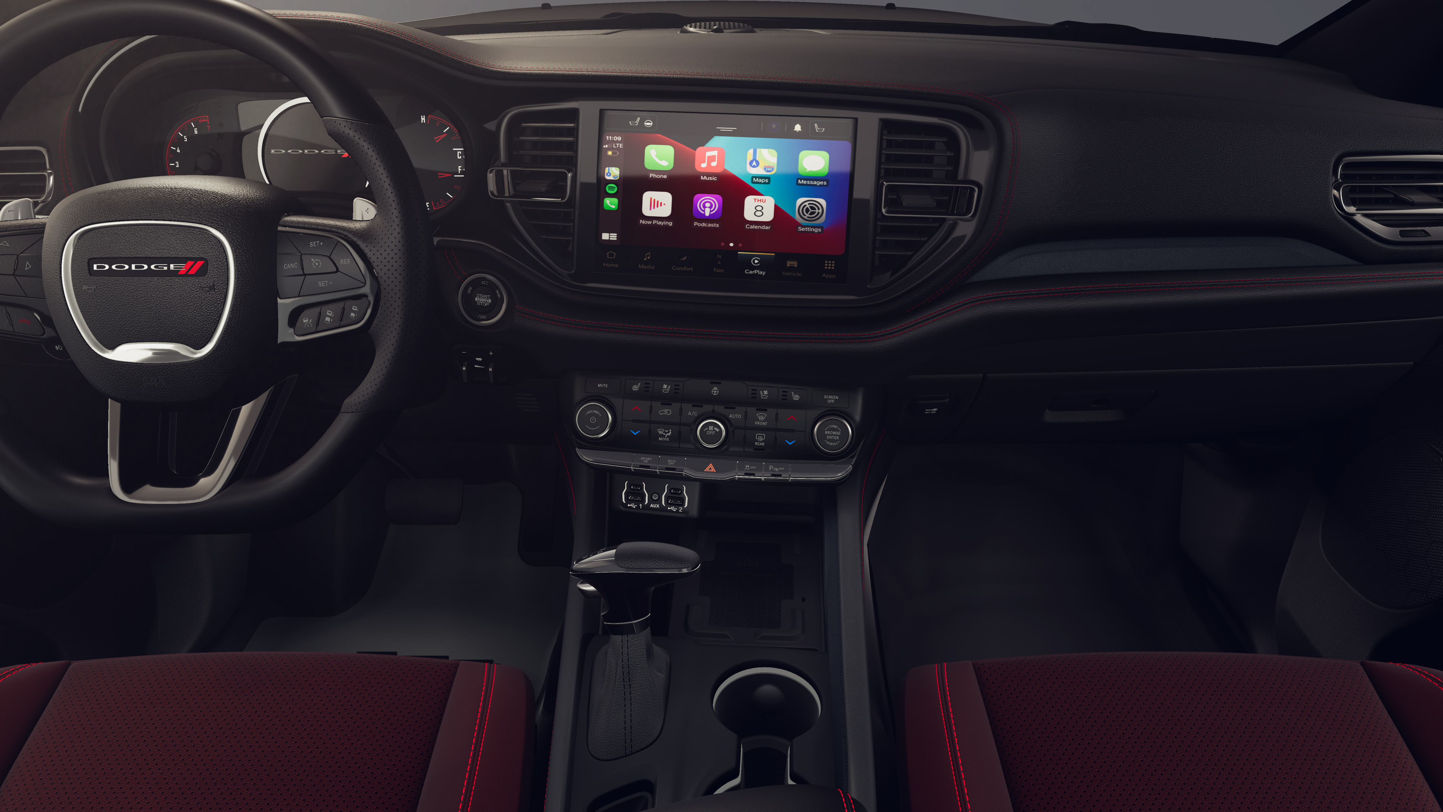 Durango GT Plus HEMI V8 is nicely equipped with Blacktop Package (Black Roof Rails, Gloss Black Badges, Integrated Roof Rail Crossbars, and Satin Black Dodge Tail Lamp Badge), Quick Order Package 22T GT Plus (115V Auxiliary Power Outlet, 7 and 4 Pin Wiring Harness, Adaptive Cruise Control with Stop, Auto High Beam Headlamp Control, Auto-Dimming Exterior Driver Mirror, Blind Spot with Trailer Detection, Class IV Receiver Hitch, Dual Remote USB Port - Charge Only, Exterior Mirrors with Heating Element, Exterior Mirrors with Memory, Exterior Mirrors with Supplemental Signals, Floor Console with Leather Armrest, Full Speed Forward Collision Warning Plus, Gloss Black Exterior Mirrors, Heated Second Row Seats, Leather Trimmed Bucket Seats, Leather Wrapped Door Panels, LED Auxiliary Low Beam and Turn Signal, Power 6x9 Multi-Function Foldaway Mirrors, Power 8-Way Driver Memory 8-Way Passenger Seats, Power Driver/Passenger 4-Way Lumbar Adjust, Power Sunroof, Power Tilt and Telescopic Steering Column, Radio/Driver Seat/Mirrors Memory, Red Accent Stitching, Trailer Brake Control, and Ventilated Front Seats), AWD, 3.09 Rear Axle Ratio, 3rd row seats: split-bench, 4-Wheel Disc Brakes, 9 Speakers, ABS brakes, Air Conditioning, Alloy wheels, AM/FM radio: SiriusXM w/360L, Apple CarPlay/Android Auto, Auto-dimming Rear-View mirror, Auto-leveling suspension, Automatic temperature control, Brake assist, Bumpers: body-color, Cloth Bucket Seats with Shift Insert, Compass, Delay-off headlights, Driver door bin, Driver vanity mirror, Dual front impact airbags, Dual front side impact airbags, Electronic Stability Control, Emergency communication system: Dodge Connect, Four wheel independent suspension, Front anti-roll bar, Front Bucket Seats, Front Center Armrest w/Storage, Front dual zone A/C, Front License Plate Bracket, Front reading lights, Fully automatic headlights, Garage door transmitter, Heated door mirrors, Heated front seats, Heated steering wheel, Illuminated entry, Knee airbag, Leather steering wheel, Low tire pressure warning, Navigation System, Occupant sensing airbag, Outside temperature display, Overhead airbag, Overhead console, Panic alarm, ParkView Rear Back-Up Camera, Passenger door bin, Passenger vanity mirror, Power door mirrors, Power driver seat, Power Liftgate, Power steering, Power windows, Radio data system, Radio: Uconnect 5 Nav with 10.1 Display, Rain sensing wipers, Rear air conditioning, Rear anti-roll bar, Rear Load Leveling Suspension, Rear reading lights, Rear seat center armrest, Rear window defroster, Rear window wiper, Remote keyless entry, Security system, Speed control, Speed-sensing steering, Speed-Sensitive Wipers, Split folding rear seat, Spoiler, Sport steering wheel, Steering wheel mounted audio controls, Tachometer, Telescoping steering wheel, Tilt steering wheel, Traction control, Trip computer, Variably intermittent wipers, Voltmeter, Wheels: 20 x 8 Black Noise Split 5-Spoke, and Wheels: 20 x 8 Satin Carbon Split 5-Spoke.