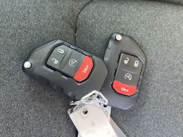 Wrangler Sport S is nicely equipped with Convenience Group (2-Door Passive Entry, Front Door Locks, Air Conditioning with Auto Temp Control, Air Filtering, Cluster 7.0 TFT Color Display, Emergency/Assistance Call, Heated Front Seats, Heated Steering Wheel, and Universal Garage Door Opener), LED Headlamp and Fog Lamp Group (Front LED Fog Lamps and LED Premium Reflector Headlamps), Quick Order Package 22S Sport S (Advanced Brake Assist, Automatic Headlamps, Corning Gorilla Glass, Deep Tint Sunscreen Windows, Enhanced Adaptive Cruise Control, Full Speed Forward Collision Warning Plus, Power Heated Mirrors, Premium Wrapped Steering Wheel, Security Alarm, Sun Visors with Illuminated Vanity Mirrors, and Wheels: 17 x 7.5 Gray), Trailer Tow and Auxiliary Switch Group (7 and 4 Pin Wiring Harness, Auxiliary Switches, and Class II Receiver Hitch), 12.3 Touchscreen Display, 3.45 Overall Top Gear Ratio, 4-Wheel Disc Brakes, 4G LTE Wi-Fi Hot Spot, 8 Speakers, ABS brakes, Air Conditioning, AM/FM radio: SiriusXM with 360L, Apple CarPlay, Apple CarPlay/Android Auto, Aux Battery, Black 3-Piece Hard Top, Brake assist, Cloth Low-Back Bucket Seats, Compass, Connectivity - US/Canada, Delay-off headlights, Driver door bin, Driver vanity mirror, Dual front impact airbags, Dual front side impact airbags, Electronic Stability Control, For More Info, Call 800-643-2112, Freedom Panel Storage Bag, Front anti-roll bar, Front Bucket Seats, Front Center Armrest w/Storage, Front fog lights, Front reading lights, Google Android Auto, Illuminated entry, Integrated Center Stack Radio, Integrated roll-over protection, Low tire pressure warning, MOPAR 1941 Hood Graphic, MOPAR All-Weather Floor Mats, Myflexcare Service Plan, Non-Lock Fuel Cap Without Discriminator, Normal Duty Suspension, Occupant sensing airbag, Outside temperature display, Overhead airbag, Panic alarm, ParkView Rear Back-Up Camera, Passenger door bin, Passenger vanity mirror, Power steering, Power windows, Radio data system, Radio: Uconnect 5 with 12.3 Display, Rear anti-roll bar, Rear reading lights, Rear Window Defroster, Rear Window Wiper/Washer, Remote keyless entry, SiriusXM Radio Service, SiriusXM with 360L, Speed control, Steering wheel mounted audio controls, Stop-Start Dual Battery System, Tachometer, Telescoping steering wheel, Tilt steering wheel, Traction control, Trip computer, Variably intermittent wipers, Wheels: 17 x 7.5 Black Steel Styled, and Wheels: 17 x 7.5 Machined with Black Pockets.