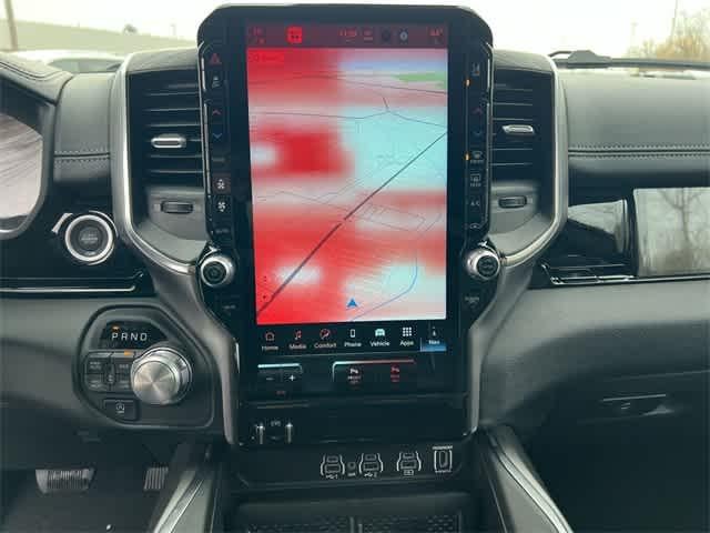 1500 Laramie is nicely equipped with Bed Utility Group (Exterior 115V AC Outlet, MOPAR 4 Adjustable Cargo Tie-Down Hooks, and MOPAR Spray in Bedliner), Laramie Level 2 Equipment Group (14.4 Touchscreen Display, 4G LTE Wi-Fi Hot Spot, Cluster 12 TFT Color Display, Connected Travel and Traffic Services, Connectivity - US/Canada, Front Passenger Interactive Display, GPS Navigation, Harman/Kardon 19 Speaker Premium Sound, Integrated Center Stack Radio, Integrated Voice Command with Bluetooth®, Power Tailgate, Radio: Uconnect 5 Nav with 14.4 Display, Rain Sensitive Windshield Wipers, SiriusXM Radio Service, SiriusXM with 360L, and USB Host Flip), Night Edition (Accent Color Door Handles, Accent Color Premium Power Mirrors, Accent Color Tailgate Handle, Anti-Spin Differential Rear Axle, Auto Power-Folding Mirrors, Auto-Dimming Exterior Driver Mirror, Black Exterior Truck Badging, Black Headlamp Bezels, Black Interior Accents, Black Painted Exterior Mirrors Caps, Black Tail Lamp Bezels, Body Color Front Bumper, Body Color Rear Bumper with Step Pads, Convex Wide-Angle Exterior Mirror Insert, Dual Exhaust with Black Tips, Exterior Mirrors Approach Lamps, Exterior Mirrors Courtesy Lamps, Exterior Mirrors with Heating Element, Exterior Mirrors with Memory, Exterior Mirrors with Supplemental Signals, Grille Surround 3 Black Texture 2 Black, Pirelli Brand Tires, Proximity Approach/Departure Lamps, RAM Grille Badge - Black, Sport Performance Hood, and Wheels: 22 x 9 Forged Aluminum), Quick Order Package 21H Laramie, 10 Speakers, 3.55 Rear Axle Ratio, 4-Wheel Disc Brakes, ABS brakes, Active Noise Control System, Adjustable pedals, Air Conditioning, Alloy wheels, AM/FM radio: SiriusXM with 360L, Apple CarPlay/Android Auto, Audio memory, Auto High-beam Headlights, Auto-dimming door mirrors, Auto-dimming Rear-View mirror, Automatic temperature control, Brake assist, Bumpers: chrome, Chrome Exterior Mirrors, Compass, Delay-off headlights, Driver door bin, Driver vanity mirror, Dual front impact airbags, Dual front side impact airbags, Electronic Stability Control, Front anti-roll bar, Front Bucket Seats, Front Center Armrest w/Storage, Front dual zone A/C, Front fog lights, Front License Plate Bracket, Front reading lights, Front wheel independent suspension, Fully automatic headlights, Garage door transmitter, Heated door mirrors, Heated front seats, Heated rear seats, Heated steering wheel, Illuminated entry, Leather steering wheel, Leather Trimmed Bucket Seats, Low tire pressure warning, Manufacturers Statement of Origin, Memory seat, Mopar Black Tubular Side Steps, MOPAR Front and Rear Rubber Floor Mats, MyFlexCare Service Plan, Navigation System, Occupant sensing airbag, Off-Road Information Pages, Outside temperature display, Overhead airbag, Overhead console, Panic alarm, ParkView Rear Back-Up Camera, Passenger door bin, Passenger vanity mirror, Pedal memory, Power door mirrors, Power driver seat, Power passenger seat, Power steering, Power windows, Radio data system, Radio: Uconnect 5 Navigation with 12.0 Display, RAM Grille Badge - Chrome, Rear anti-roll bar, Rear reading lights, Rear seat center armrest, Rear step bumper, Remote keyless entry, Security system, Speed control, Split folding rear seat, Steering wheel mounted audio controls, Tachometer, Telescoping steering wheel, Tilt steering wheel, Traction control, Trailer Brake Control, Trip computer, Turn signal indicator mirrors, Variably intermittent wipers, Ventilated front seats, Voltmeter, and Wheels: 20 x 9 Premium Paint/Polish. Price includes: $1000 - 2026 National Bonus Cash . Exp. 03/02/2026 $3500 - 2026 National Retail Consumer Cash . Exp. 03/02/2026