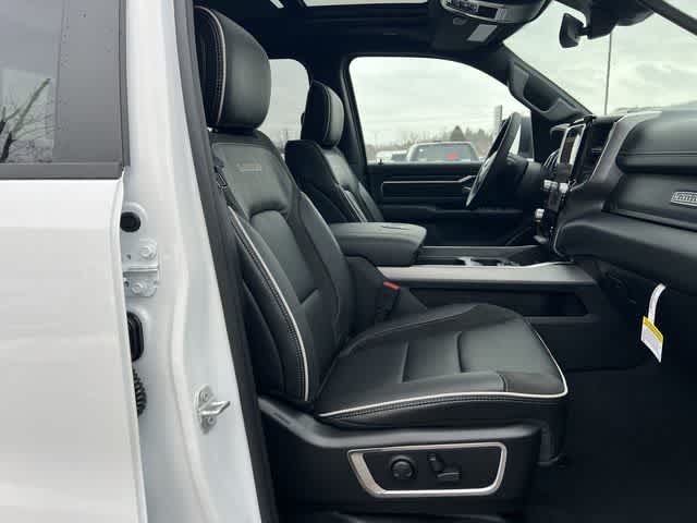 1500 Laramie is nicely equipped with Bed Utility Group (Exterior 115V AC Outlet, MOPAR 4 Adjustable Cargo Tie-Down Hooks, and MOPAR Spray in Bedliner), Laramie Level 1 Equipment Group (Rain Sensitive Windshield Wipers and Remote Tailgate Release), Quick Order Package 27H Laramie, Sport Appearance Package (Accent Color Premium Power Mirrors, Auto Power-Folding Mirrors, Auto-Dimming Exterior Driver Mirror, Black Interior Accents, Black Painted Exterior Mirrors Caps, Body Color Front Bumper, Body Color Rear Bumper with Step Pads, Bridgestone Brand Tires, Convex Wide-Angle Exterior Mirror Insert, Exterior Mirrors Courtesy Lamps, Exterior Mirrors with Heating Element, Exterior Mirrors with Memory, Exterior Mirrors with Supplemental Signals, Grille Surround 3 Body Color Tex 2 Black, RAM Grille Badge - Chrome, and Sport Performance Hood), 10 Speakers, 33 Gallon Fuel Tank, 4-Wheel Disc Brakes, 4G LTE Wi-Fi Hot Spot, ABS brakes, Active Noise Control System, Adjustable pedals, Air Conditioning, Alloy wheels, AM/FM radio: SiriusXM with 360L, Apple CarPlay/Android Auto, Audio memory, Auto High-beam Headlights, Auto-dimming door mirrors, Auto-dimming Rear-View mirror, Automatic temperature control, Brake assist, Bumpers: chrome, Chrome Exterior Mirrors, Compass, Connected Travel and Traffic Services, Connectivity - US/Canada, Delay-off headlights, Dome Dual LED Reading Lamp, Driver door bin, Driver vanity mirror, Dual front impact airbags, Dual front side impact airbags, Dual-Pane Panoramic Sunroof, Electronic Stability Control, Front anti-roll bar, Front Bucket Seats, Front Center Armrest w/Storage, Front dual zone A/C, Front fog lights, Front License Plate Bracket, Front reading lights, Front wheel independent suspension, Fully automatic headlights, Garage door transmitter, GPS Navigation, Heated door mirrors, Heated front seats, Heated rear seats, Heated steering wheel, Illuminated entry, Integrated Center Stack Radio, Integrated Voice Command with Bluetooth®, Leather steering wheel, Leather Trimmed Bucket Seats, LED Dome/Reading Lamp, Low tire pressure warning, Manufacturers Statement of Origin, Memory seat, MOPAR Front and Rear Rubber Floor Mats, MyFlexCare Service Plan, Navigation System, Occupant sensing airbag, Off-Road Information Pages, Outside temperature display, Overhead airbag, Overhead console, Panic alarm, ParkView Rear Back-Up Camera, Passenger door bin, Passenger vanity mirror, Pedal memory, Power door mirrors, Power driver seat, Power passenger seat, Power steering, Power windows, Radio data system, Radio: Uconnect 5 Navigation with 12.0 Display, Rear anti-roll bar, Rear reading lights, Rear seat center armrest, Rear step bumper, Remote keyless entry, Security system, SiriusXM Radio Service, SiriusXM with 360L, Speed control, Split folding rear seat, Steering wheel mounted audio controls, Tachometer, Telescoping steering wheel, Tilt steering wheel, Traction control, Trip computer, Turn signal indicator mirrors, USB Host Flip, Variably intermittent wipers, Ventilated front seats, Voltmeter, Wheel to Wheel Side Steps, and Wheels: 20 x 9 Premium Paint/Polish. Price includes: $3500 - 2026 National Retail Bonus Cash . Exp. 04/30/2026