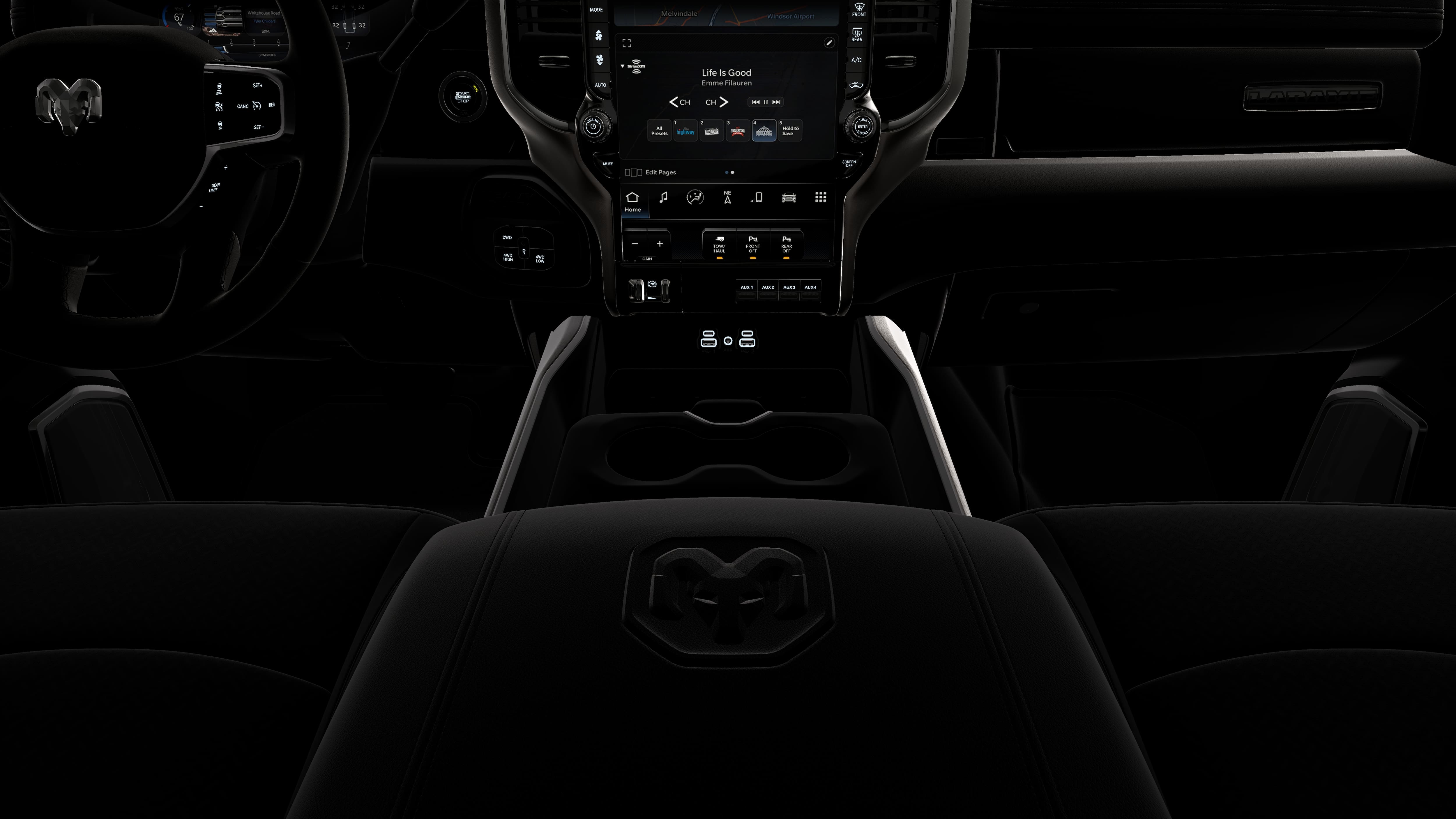 2500 Laramie is nicely equipped with Laramie Level 2 Plus Equipment Group (#1 Seat Foam Cushion, 115V Auxiliary Rear Power Outlet, 14.4 Touchscreen Display, 17 Speaker Harman/Kardon Premium Sound, 2 Way Rear Headrest Seat, 2nd Row in Floor Storage Bins, 4 Way Front Headrests, 4G LTE Wi-Fi Hot Spot, Active Lane Management System, Adaptive Steering System, Alexa Built-in, Anti-Spin Differential Rear Axle, Apple CarPlay, Auto Adjust in Reverse Exterior Mirrors, Auto Dim Exterior Mirror, Auto High Beam Headlamp Control, Auto Power-Folding Mirrors, Auto-Dimming Exterior Passenger Mirror, Bucket Seats, Center Stop Lamp with Cargo View Camera, Chrome Exterior Mirrors, Connected Travel and Traffic Services, Connectivity - US/Canada, Disassociated Touchscreen Display, Drowsy Driver Detection, Dual Wireless Charging Pad, Emergency Vehicle Alert System (EVAS), Exterior Mirrors Courtesy Lamps, Exterior Mirrors with Heating Element, Exterior Mirrors with Memory, Exterior Mirrors with Supplemental Signals, Foam Bottle Insert (door Trim Panel), Folding Flat Load Floor Storage, For Details, Visit DriveUconnect.com, For More Info, Call 800-643-2112, Forward and Reverse Utility Lights, Front Seat Back Map Pockets, Full Length Upgraded Floor Console, Global Telematics Box Module, Google Android Auto, GPS Antenna Input, GPS Navigation, HD Radio, Heated Front Seats, Heated Steering Wheel, High Back Seats, Integrated Voice Command with Bluetooth®, Leather Trimmed Bucket Seats, LED Bed Lighting, Mirror Running Lights, MOPAR Deployable Bed Step, MOPAR Spray in Bedliner, Off-Road Info Pages, Power 2-Way Driver Lumbar Adjust, Power 2-Way Passenger Lumbar Adjust, Power Adjust 8-Way Driver Seat, Power Adjust 8-Way Front Passenger Seat, Power Adjust Mirrors, Power Adjustable Pedals with Memory, Power Deployable Running Boards, Power Heated Fold Telescopic Mirrors with Memory, Power Telescoping Mirrors, Power-Adjustable Convex Aux Mirrors, Radio: Uconnect 5 Nav with 14.4 Display, Radio/Driver Seat/Mirrors/Pedals Memory, Rain Sensitive Windshield Wipers, Rear 60/40 Folding Seat, Remote Tailgate Release, Selectable Tire Fill Alert, SiriusXM Radio Service, SiriusXM with 360L, Traffic Sign Recognition, Trailer Tow Pages, and Ventilated Front Seats), Night Edition (Black Exterior Mirrors, Black Exterior Truck Badging, Black Wheel Center Hub, Body Color Grille-Surround, Gloss Black Grille Billets/Accents, Sport Performance Hood, and Wheels: 20 x 8.0 Black Painted Aluminum), Quick Order Package 2UH Laramie, 10 Speakers, 3.73 Axle Ratio, 4-Wheel Disc Brakes, ABS brakes, Air Conditioning, Alloy wheels, AM/FM radio: SiriusXM with 360L, Apple CarPlay/Android Auto, Auto-dimming Rear-View mirror, Automatic temperature control, Brake assist, Bumpers: body-color, Clearance Lamps, Compass, Dash Pass Thru Wire Circuits, Delay-off headlights, Driver door bin, Driver vanity mirror, Dual Alternators Rated At 400 Amps, Dual front impact airbags, Dual front side impact airbags, Electronic Stability Control, Front anti-roll bar, Front Center Armrest w/Storage, Front dual zone A/C, Front fog lights, Front License Plate Bracket, Front reading lights, Fully automatic headlights, Garage door transmitter, Heated door mirrors, Heated front seats, Heated steering wheel, Illuminated entry, Instrument Panel Mounted Auxiliary Switches, Leather Trim 40/20/40 Bench Seat, Low tire pressure warning, MyFlexCare Service Plan, Navigation System, Occupant sensing airbag, Outside temperature display, Overhead airbag, Overhead console, Painted Flat Wheel-to-Wheel Side Steps, Panic alarm, ParkView Rear Back-Up Camera, Passenger door bin, Passenger vanity mirror, Power door mirrors, Power driver seat, Power passenger seat, Power steering, Power Sunroof, Power windows, Radio data system, Radio: Uconnect 5 Navigation with 12.0 Display, Rear anti-roll bar, Rear reading lights, Rear seat center Price includes: $1000 - 2026 National Bonus Cash .
