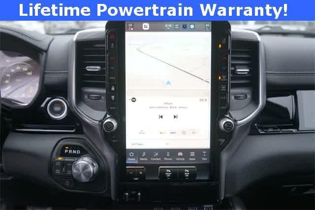 1500 Laramie is nicely equipped with Bed Utility Group (Exterior 115V AC Outlet, MOPAR 4 Adjustable Cargo Tie-Down Hooks, and MOPAR Spray in Bedliner), Laramie Level 2 Equipment Group (14.4 Touchscreen Display, 4G LTE Wi-Fi Hot Spot, Cluster 12 TFT Color Display, Connected Travel and Traffic Services, Connectivity - US/Canada, Front Passenger Interactive Display, GPS Navigation, Harman/Kardon 19 Speaker Premium Sound, Integrated Center Stack Radio, Integrated Voice Command with Bluetooth®, Power Tailgate, Radio: Uconnect 5 Nav with 14.4 Display, Rain Sensitive Windshield Wipers, SiriusXM Radio Service, SiriusXM with 360L, and USB Host Flip), Night Edition (Accent Color Door Handles, Accent Color Premium Power Mirrors, Accent Color Tailgate Handle, Anti-Spin Differential Rear Axle, Auto Power-Folding Mirrors, Auto-Dimming Exterior Driver Mirror, Black Exterior Truck Badging, Black Headlamp Bezels, Black Interior Accents, Black Painted Exterior Mirrors Caps, Black Tail Lamp Bezels, Body Color Front Bumper, Body Color Rear Bumper with Step Pads, Convex Wide-Angle Exterior Mirror Insert, Dual Exhaust with Black Tips, Exterior Mirrors Approach Lamps, Exterior Mirrors Courtesy Lamps, Exterior Mirrors with Heating Element, Exterior Mirrors with Memory, Exterior Mirrors with Supplemental Signals, Grille Surround 3 Black Texture 2 Black, Pirelli Brand Tires, Proximity Approach/Departure Lamps, RAM Grille Badge - Black, Sport Performance Hood, and Wheels: 22 x 9 Forged Aluminum), Quick Order Package 21H Laramie, 10 Speakers, 3.55 Rear Axle Ratio, 4-Wheel Disc Brakes, ABS brakes, Active Noise Control System, Air Conditioning, Alloy wheels, AM/FM radio: SiriusXM with 360L, Apple CarPlay/Android Auto, Audio memory, Auto High-beam Headlights, Auto-dimming door mirrors, Auto-dimming Rear-View mirror, Automatic temperature control, Brake assist, Bumpers: chrome, Chrome Exterior Mirrors, Compass, Delay-off headlights, Driver door bin, Driver vanity mirror, Dual front impact airbags, Dual front side impact airbags, Electronic Stability Control, Front anti-roll bar, Front Bucket Seats, Front Center Armrest w/Storage, Front dual zone A/C, Front fog lights, Front License Plate Bracket, Front reading lights, Front wheel independent suspension, Fully automatic headlights, Garage door transmitter, Heated door mirrors, Heated front seats, Heated rear seats, Heated steering wheel, Illuminated entry, Leather steering wheel, Leather Trimmed Bucket Seats, Low tire pressure warning, Manufacturers Statement of Origin, Memory seat, Mopar Black Tubular Side Steps, MOPAR Front and Rear Rubber Floor Mats, MyFlexCare Service Plan, Navigation System, Occupant sensing airbag, Off-Road Information Pages, Outside temperature display, Overhead airbag, Overhead console, Panic alarm, ParkView Rear Back-Up Camera, Passenger door bin, Passenger vanity mirror, Power door mirrors, Power driver seat, Power passenger seat, Power steering, Power windows, Radio data system, Radio: Uconnect 5 Navigation with 12.0 Display, RAM Grille Badge - Chrome, Rear anti-roll bar, Rear reading lights, Rear seat center armrest, Rear step bumper, Remote keyless entry, Security system, Speed control, Split folding rear seat, Steering wheel mounted audio controls, Tachometer, Telescoping steering wheel, Tilt steering wheel, Traction control, Trailer Brake Control, Trip computer, Turn signal indicator mirrors, Variably intermittent wipers, Ventilated front seats, Voltmeter, and Wheels: 20 x 9 Premium Paint/Polish. Price includes: $3500 - 2026 National Retail Consumer Cash . Exp. 02/02/2026