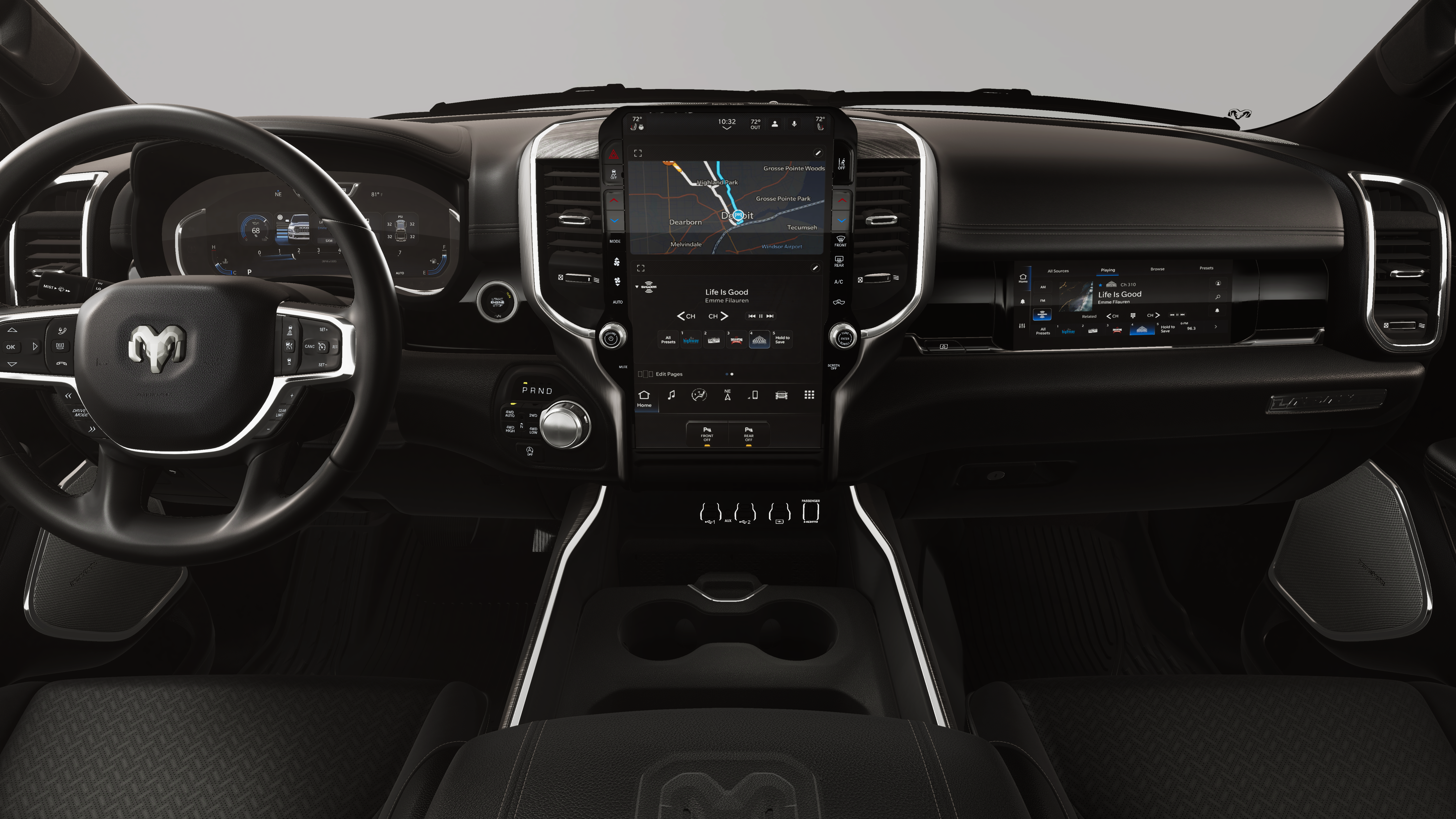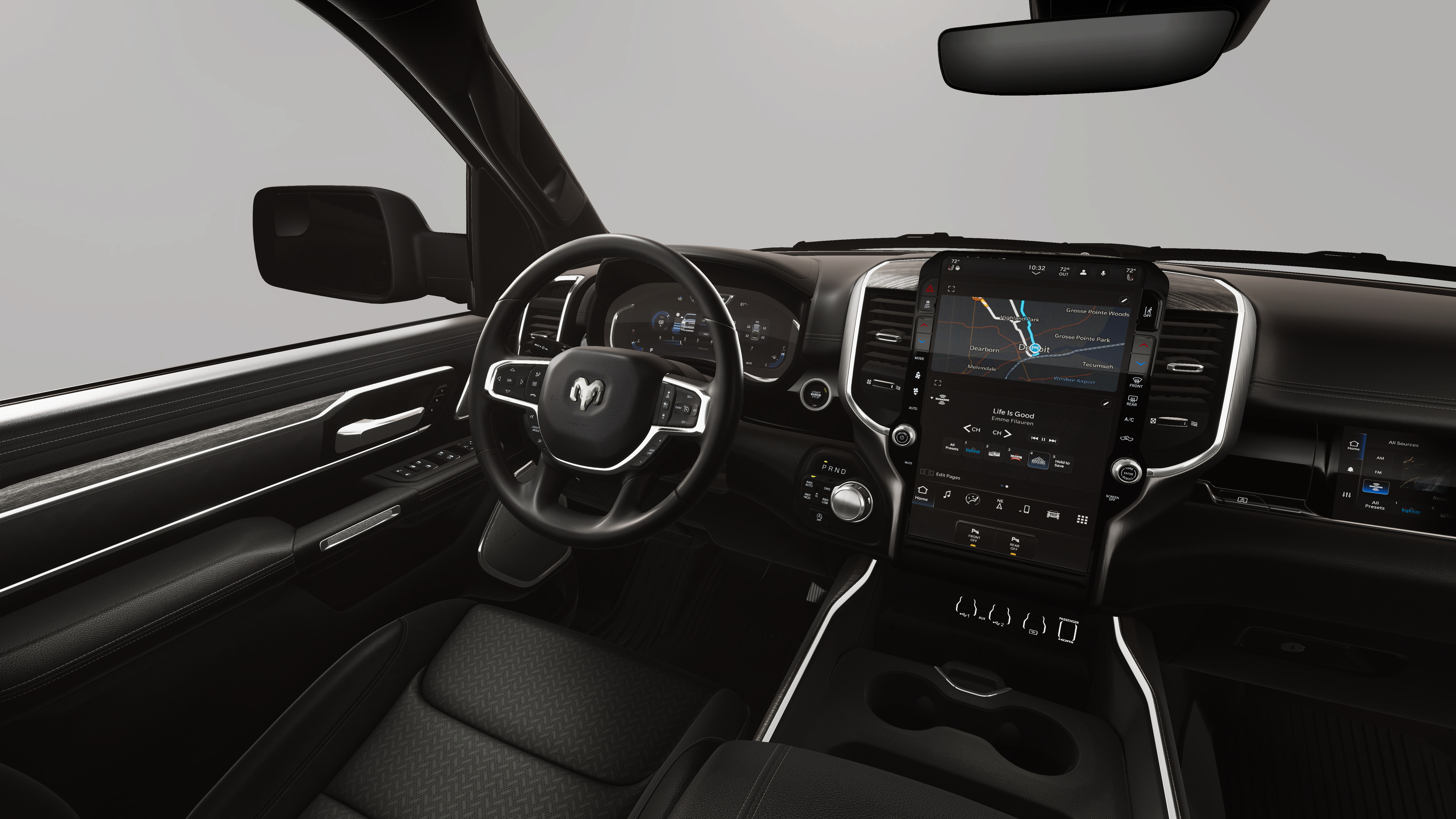 1500 Laramie is nicely equipped with Laramie Level 2 Equipment Group (14.4 Touchscreen Display, 4G LTE Wi-Fi Hot Spot, Cluster 12 TFT Color Display, Connected Travel and Traffic Services, Connectivity - US/Canada, Front Passenger Interactive Display, GPS Navigation, Harman/Kardon 19 Speaker Premium Sound, Integrated Center Stack Radio, Integrated Voice Command with Bluetooth®, Power Tailgate, Radio: Uconnect 5 Nav with 14.4 Display, Rain Sensitive Windshield Wipers, SiriusXM Radio Service, SiriusXM with 360L, and USB Host Flip), Night Edition (Accent Color Door Handles, Accent Color Premium Power Mirrors, Accent Color Tailgate Handle, Anti-Spin Differential Rear Axle, Auto Power-Folding Mirrors, Auto-Dimming Exterior Driver Mirror, Black Exterior Truck Badging, Black Headlamp Bezels, Black Interior Accents, Black Painted Exterior Mirrors Caps, Black Tail Lamp Bezels, Body Color Front Bumper, Body Color Rear Bumper with Step Pads, Convex Wide-Angle Exterior Mirror Insert, Dual Exhaust with Black Tips, Exterior Mirrors Approach Lamps, Exterior Mirrors Courtesy Lamps, Exterior Mirrors with Heating Element, Exterior Mirrors with Memory, Exterior Mirrors with Supplemental Signals, Grille Surround 3 Black Texture 2 Black, Pirelli Brand Tires, Proximity Approach/Departure Lamps, RAM Grille Badge - Black, Sport Performance Hood, and Wheels: 22 x 9 Forged Aluminum), Quick Order Package 21H Laramie, 10 Speakers, 3.55 Rear Axle Ratio, 4-Wheel Disc Brakes, ABS brakes, Active Noise Control System, Air Conditioning, Alloy wheels, AM/FM radio: SiriusXM with 360L, Apple CarPlay/Android Auto, Audio memory, Auto High-beam Headlights, Auto-dimming door mirrors, Auto-dimming Rear-View mirror, Automatic temperature control, Brake assist, Bumpers: chrome, Chrome Exterior Mirrors, Compass, Delay-off headlights, Dome Dual LED Reading Lamp, Driver door bin, Driver vanity mirror, Dual front impact airbags, Dual front side impact airbags, Dual-Pane Panoramic Sunroof, Electronic Stability Control, Front anti-roll bar, Front Bucket Seats, Front Center Armrest w/Storage, Front dual zone A/C, Front fog lights, Front License Plate Bracket, Front reading lights, Front wheel independent suspension, Fully automatic headlights, Garage door transmitter, Heated door mirrors, Heated front seats, Heated rear seats, Heated steering wheel, Illuminated entry, Leather steering wheel, Leather Trimmed Bucket Seats, LED Dome/Reading Lamp, Low tire pressure warning, Manufacturers Statement of Origin, Memory seat, MOPAR Front and Rear Rubber Floor Mats, Navigation System, Occupant sensing airbag, Off-Road Information Pages, Outside temperature display, Overhead airbag, Overhead console, Panic alarm, ParkView Rear Back-Up Camera, Passenger door bin, Passenger vanity mirror, Power Deployable Running Boards, Power door mirrors, Power driver seat, Power passenger seat, Power steering, Power windows, Radio data system, Radio: Uconnect 5 Navigation with 12.0 Display, RAM Grille Badge - Chrome, Rear anti-roll bar, Rear reading lights, Rear seat center armrest, Rear step bumper, Remote keyless entry, Security system, Speed control, Split folding rear seat, Steering wheel mounted audio controls, Tachometer, Telescoping steering wheel, Tilt steering wheel, Traction control, Tri-Fold Tonneau Cover, Trip computer, Turn signal indicator mirrors, Variably intermittent wipers, Ventilated front seats, Voltmeter, and Wheels: 20 x 9 Premium Paint/Polish. Price includes: $3500 - 2026 National Retail Consumer Cash . Exp. 02/02/2026
