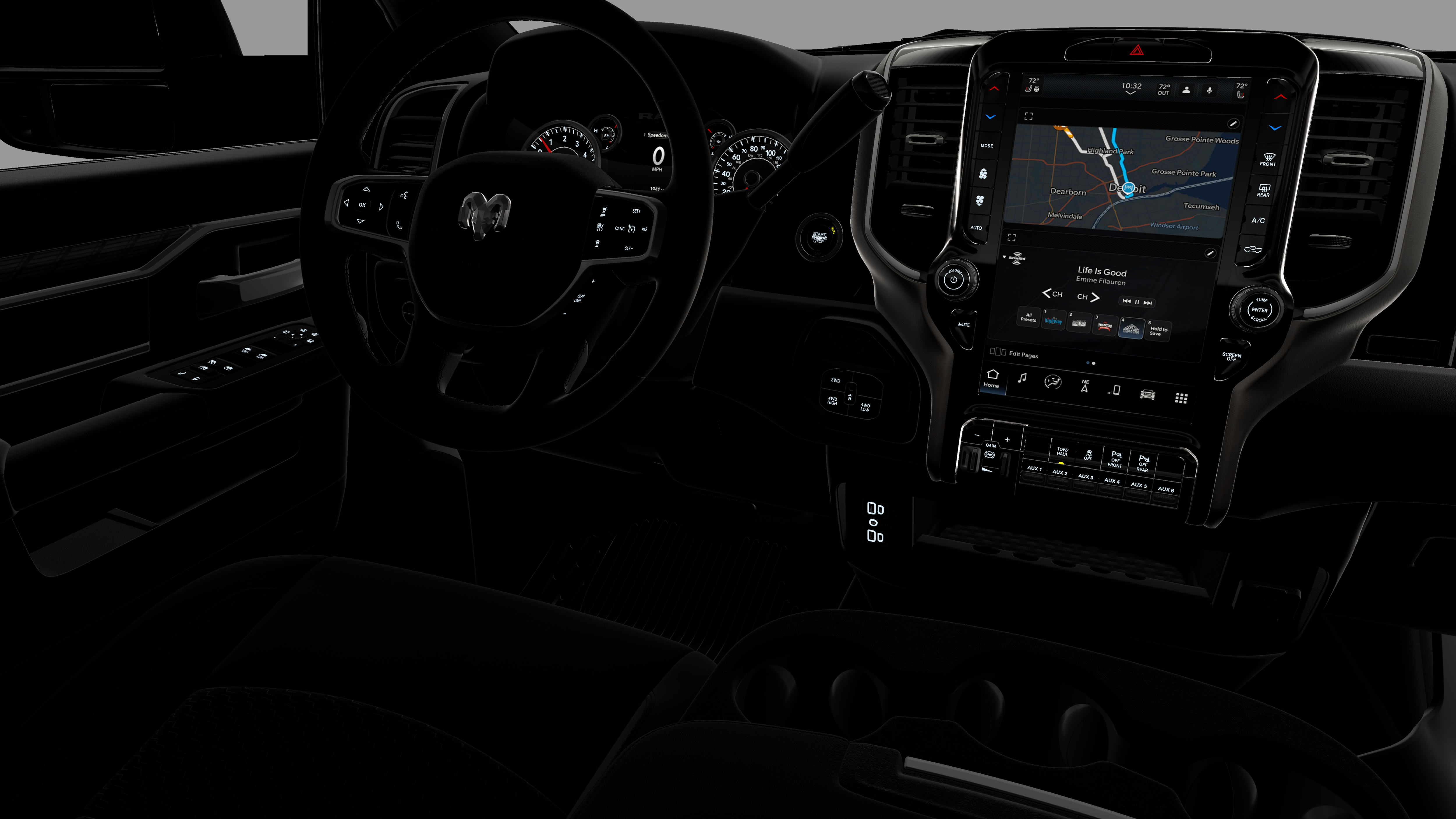 - Radio w/Seek-Scan, Clock, Speed Compensated Volume Control, Aux Audio Input Jack, Voice Activation, Radio Data System and Uconnect External Memory Control