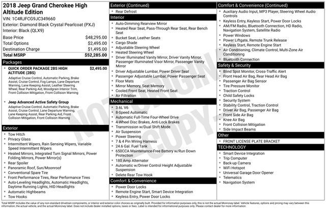 Diamond Black Crystal Pearlcoat 2018 Jeep Grand Cherokee High Altitude 4D Sport Utility 4WD 8-Speed Automatic 3.6L V6 24V VVT