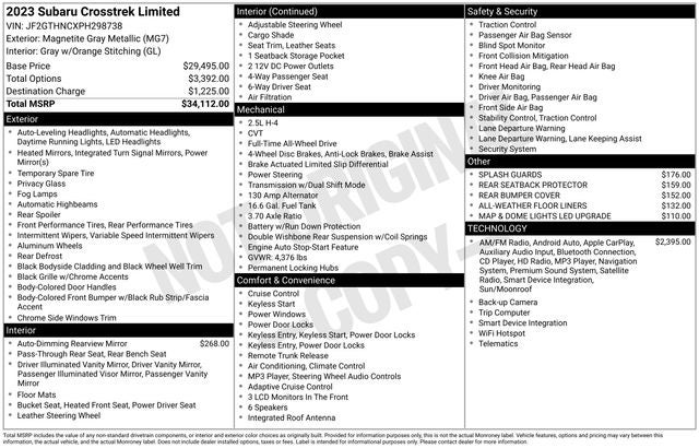Whether you're embarking on a thrilling adventure or navigating the daily commute, this 2023 Subaru Crosstrek Limited is the perfect companion. Experience the perfect blend of style, performance, and technology that will elevate your driving experience. Visit our showroom today and let us demonstrate why this Crosstrek is the ideal choice for you.